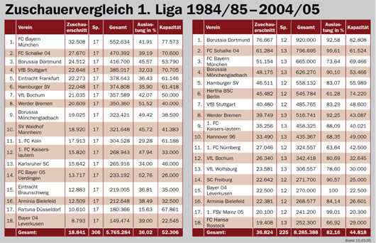 Zuschauervergleich 1. Liga 1984/85 – 2004/05 Faszination Fankurve 01.04.2005 0 Kommentare Foto: Faszination Fankurve