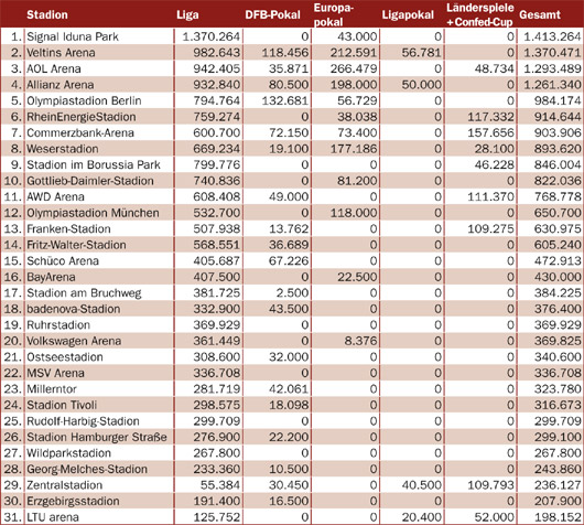 Bestbesuchte deutsche Stadien 2005 (Fußball) Faszination Fankurve 01.02.2006 0 Kommentare Foto: Faszination Fankurve