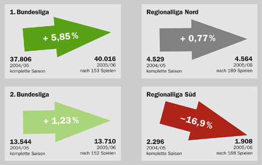 Zuschauerschnitt Fußball Deutschland Faszination Fankurve 01.02.2006 0 Kommentare Foto: Faszination Fankurve Im Vergleich: Durchschnittlicher Besuch pro Spiel in der Saison 2004/05 und der Hinrunde 2005/06