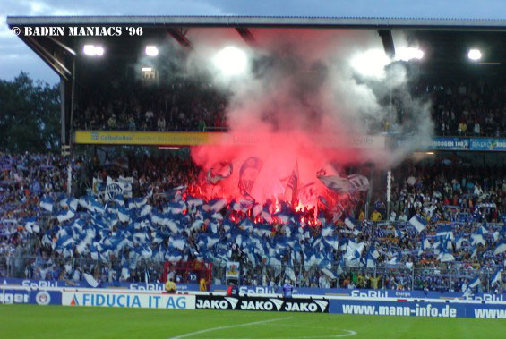 Beck: Zum ersten Saisonheimspiel kam erstmals seit zehn Jahren zum Derby mit dem 1. FC Kaiserslautern. Dabei wurden im Block-L, trotz einer klaren Abmachung innerhalb der Fanszene, Bengalos gezündet. Das führte letzten Endes dazu, dass die Stadt Karlsruhe ein ab sofort gültiges Choreo- und Bannerverbot ausgesprochen hat, da man bei der Polizei der Ansicht ist, dass Pyromaterialien im Schutze der Fahnen gezündet wurden.