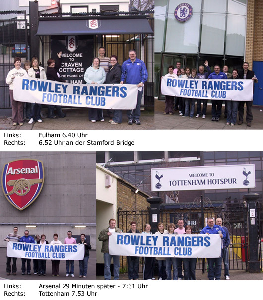Freunde und Gönner waren von der Idee begeistert und spendeten eine vierstellige Summe. Zur Hälfte geht sie an die Kicker der Rangers und zur anderen Hälfte an das Acorns Children’s Hospice. Am nächsten Morgen sahen die Fußballfans dann endlich auch ein Spiel: Die Jungs der Rowley Rangers mussten ran. (Stadionwelt, 27.3.2007)