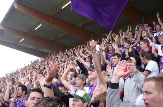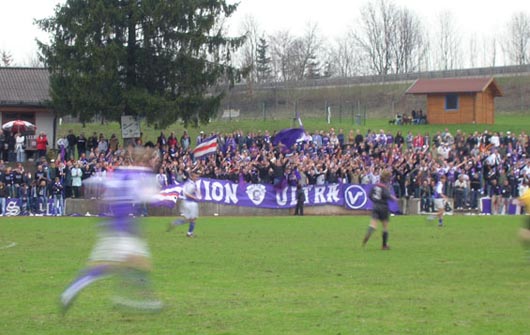 Grobovscheck: Das lässt sich gar nicht so genau beziffern. Bei Heimspielen besuchen uns im Schnitt 1.500 Leute. In der ersten Saison waren es noch knapp 2.000 Zuschauer pro Spiel. Aber wir haben uns mittlerweile bei einem sehr guten Mittelmaß eingependelt. Und im Vergleich zu den oberen Ligen stehen wir doch gar nicht so schlecht da, oder? Auswärts bewegen wir uns momentan bei Zahlen rund um die 300 bis 800, wobei hier eben fast nur die oben genannten Gruppen anwesend sind. Für die Gastgeber sind unsere Spiele immer ein Geldsegen, da sie gerne die Eintrittspreise hochschrauben, wenn die Austria kommt. Wir sind der einzige Verein, der die Dorfplätze mit echten Fans bereichert.