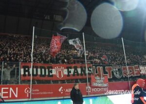 Am Samstag trafen sich rund 2.000 Fans in der Essener Innenstadt, um lautstark für einen Neubau an der Hafenstraße zu demonstrieren. Wie die Polizei nach der Abschlusskundgebung erwähnte, verhielten sich die Demonstranten „absolut friedlich“.
