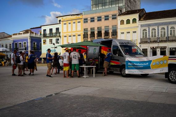 Gabriel: Unserem Eindruck nach ist das sehr unterschiedlich und individuell. Es gibt natürlich die, die von Spielort zu Spielort fahren und die, die noch andere Spiele besuchen. Dann gibt es sicher eine Gruppe, die Urlaub und WM verbindet und einfach schaut, was machbar ist. Dann gibt es noch das Fancamp vom Fanclub Nationalmannschaft in der Nähe von Recife, welches zum zweiten und dritten Spiel mit 300 Fans ausgebucht ist. Und natürlich gibt es eine Reihe von Gruppen, die mit Reiseunternehmen quasi all inclusive unterwegs ist.