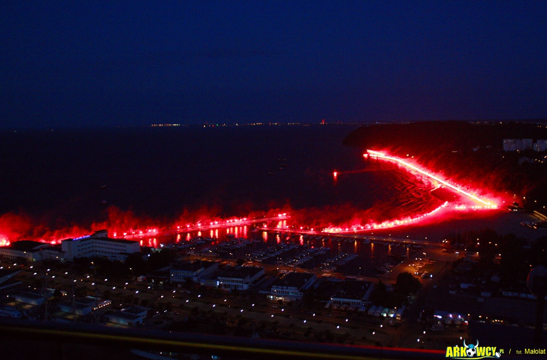 Arka Gdynia Fans erleuchten gesamte Fankurve