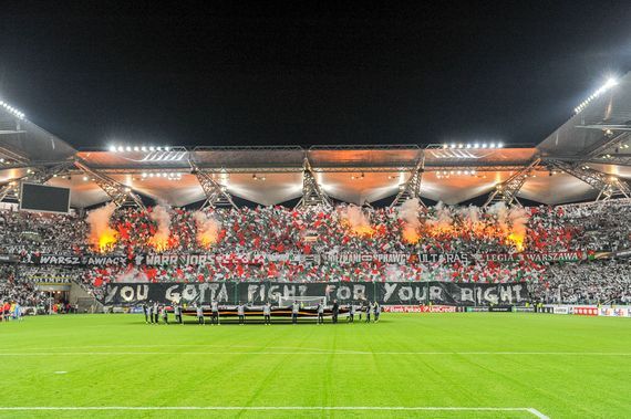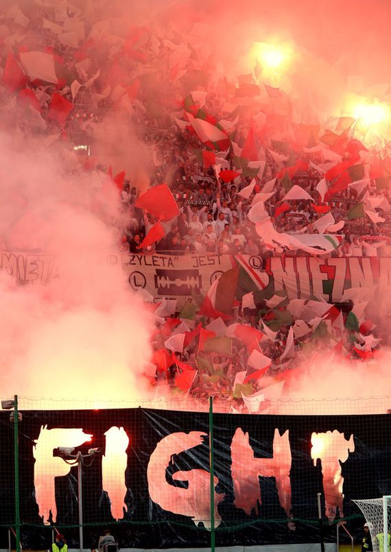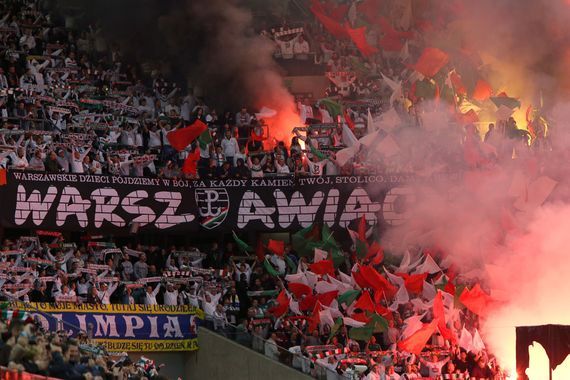 Legia-Ultras mit Choreografie & Pyroaktion beim Geisterspiel