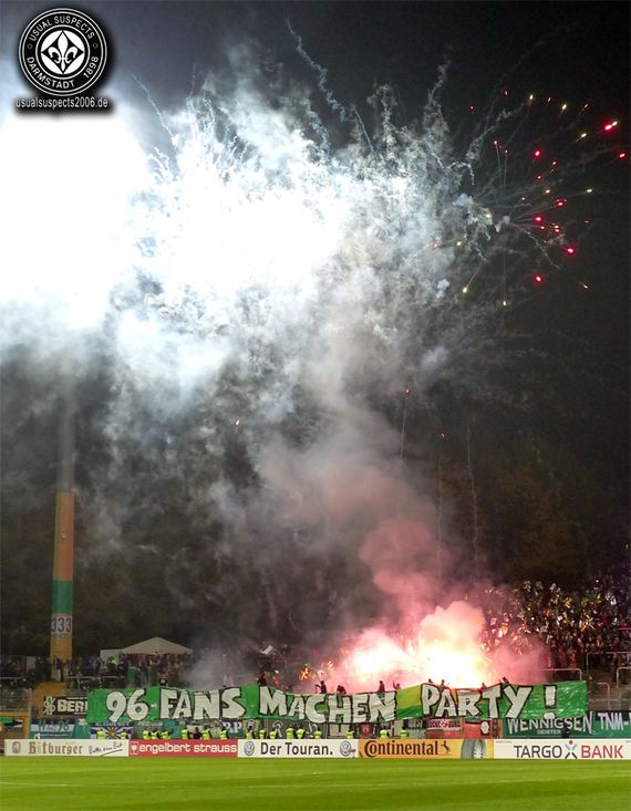 Pyroshow der Hannover 96 Fans in Darmstadt