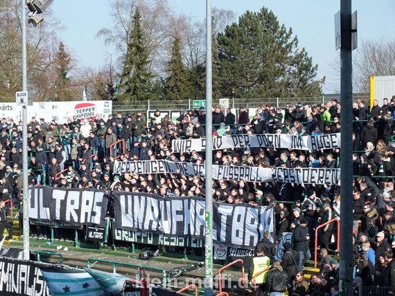 Die Ultras von Preußen Münster nutzten das gestrige Auswärtsspiel in Lotte für eine Choreografie, mit…