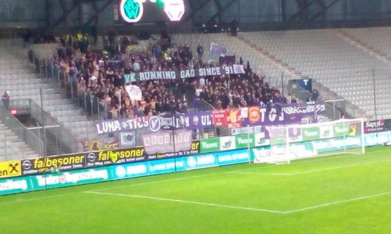 Austria Salzburg Fans richteten das Spruchband „VK: Running Gag Since ´91“ an die 1991 gegründete Innsbrucker Ultràgruppe Verrückte Köpfe. Das Derby, das wegen des Abstiegs von Austria Salzburg wohl vorerst das letzte Aufeinandertreffen beider Teams bleiben wird, endete vor 4.018 Zuschauern 2:2. Die Fanfotos beider Fanlager gibt es oben in der Galerie. (Faszination Fankurve, 17.05.2016)