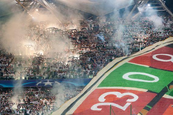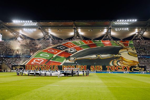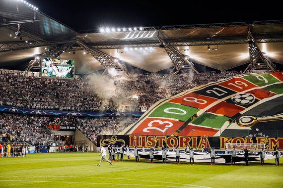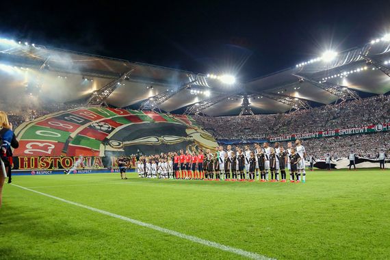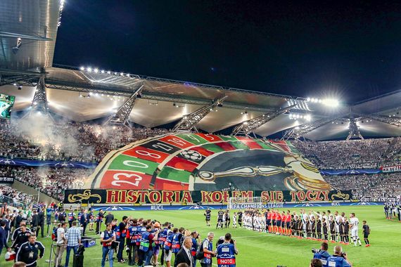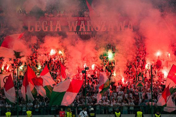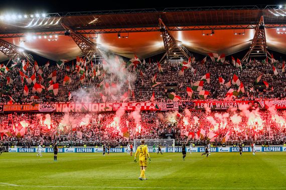 Legia-Ultras mit Choreografie & Pyroaktion beim Geisterspiel