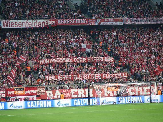 Die Schickeria München positionierte sich via Spruchbändern gegen eine Superliga.