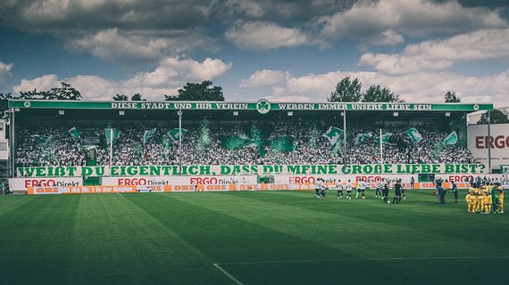 Zudem ist es, wie in den vergangenen Pokal-Heimspielen, möglich, Zaunfahnen an die Werbebanden zu hängen, da diese bekanntermaßen mit grüner Folie überklebt sind.