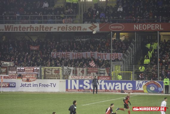 „Keine Halle mit Red Bull“, war auf einem Spruchband der FC Bayern München Ultras beim Freitagabendspiel in Freiburg im Gästeblock des Dreisamstadions zu lesen.