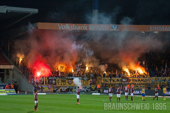 Pyroaktion der Dynamo Dresden Fans in Braunschweig.