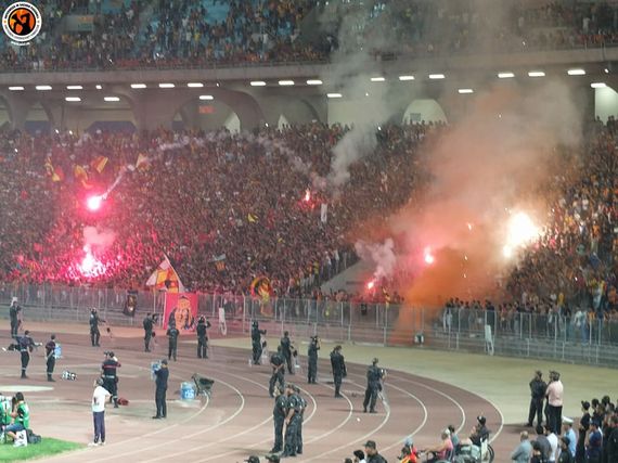 Im Stade Olympique de Radès bei Tunis kam es gestern zum Spiel der afrikanischen Champions League zwischen Esperance Tunis aus Tunesien und Al Ahly aus Ägypten. Beide Fanszenen zeigten bei dem Duell sehenswerte Choreografien und fielen durch das mehrfache Zünden von Pyrotechnik auf.