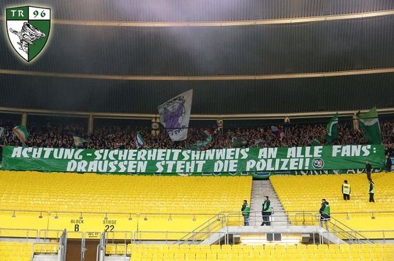 So hielten die Ultras Rapid zum Ende des Spiels ein Spruchband hoch, auf dem „Achtung – Sicherheitshinweis an alle Fans: Draußen steht die Polizei!“ geschrieben stand. Die Ultras warnten damit alle Rapid-Fans vorm Verlassen des Stadions vor der dort platzierten Polizei, weil es genau dort vor dem Stadion nur wenige Tage zuvor zum umstrittenen Einsatz der Beamten kam.