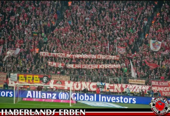 Solidaritätsspruchband der Schickeria München in Richtung çArşı im Jahr 2014 in der Südkurve München.