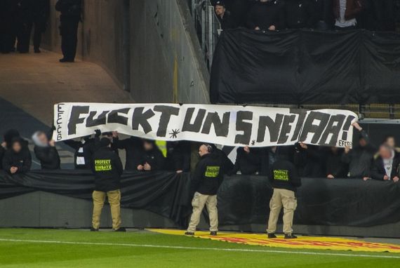 Hunderte Eintracht-Fans betraten am Montag kurz vor Anpfiff des Spiels den Innenraum und brachten an den Werbebanden Protestplakate an. Der Anpfiff verzögerte sich dadurch um fünf Minuten. Auch in der zweiten Halbzeit verspätete sich der Beginn, weil Eintracht-Fans Tennisbälle und Papierrollen in den Innenraum warfen. Während des gesamten Spiels benutzten SGE-Fans bei Leipziger Ballbesitz die ausgeteilten Trillerpfeifen und schwiegen bei Ballbesitz für die Eintracht. Zudem waren unzählige Protestspruchbänder zu sehen (Faszination Fankurve berichtete). (Faszination Fankurve, 22.02.2018)