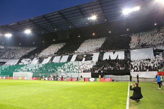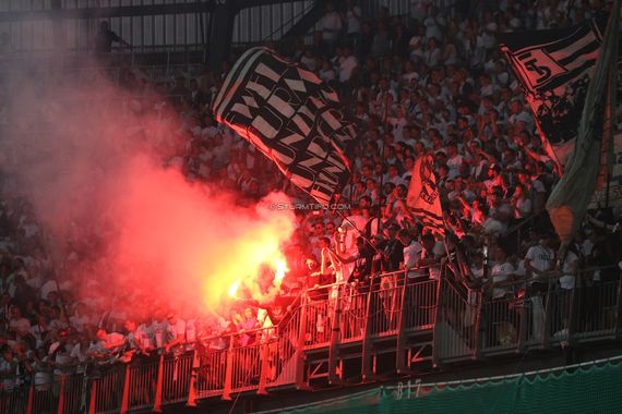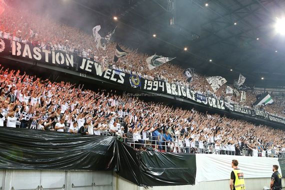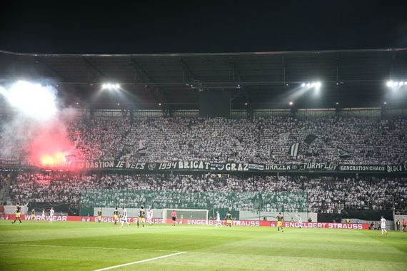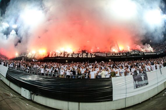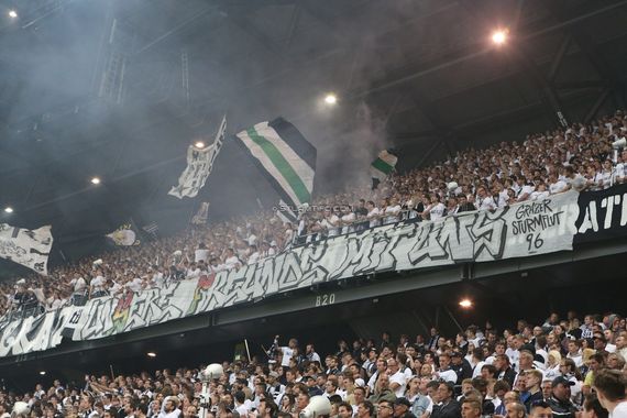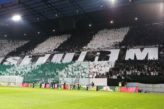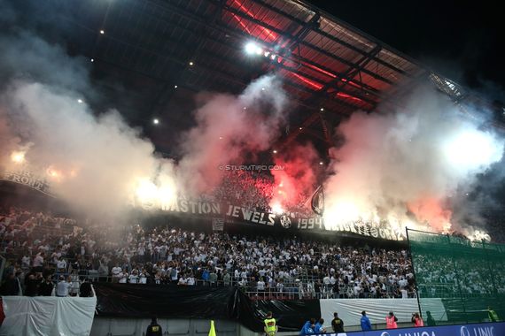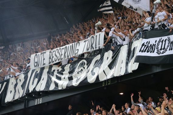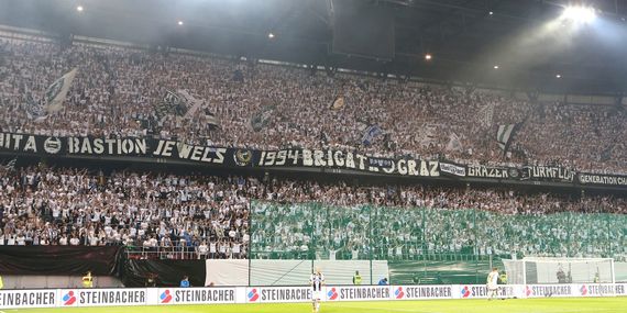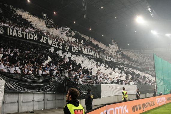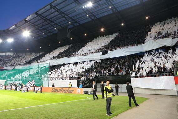 News International Choreo, Gedenkspruchband, Pyro, Aufruf für soziale Aktion und großer Besuch aus Nürnberg bei Rapid Wien gegen Sturm Graz 0