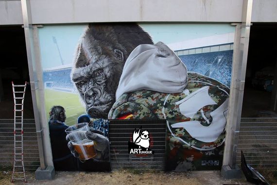 Wandbild hinter der Südtribüne im Rostock Ostseestadion