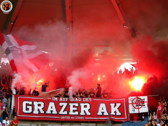 Nachdem der Grazer Athletiksport Klub im Jahr 2012 zum wiederholten Male Konkurs ging und den Spielbetrieb einstellte, gründeten die Fans den Verein unter dem Namen Grazer Allgemeiner Club neu. Seitdem ist der Grazer AK in den vergangenen fünf Jahren fünf Mal in Folge aufgestiegen und ab der Saison 2018/2019 nun wieder drittklassig (Faszination Fankurve berichtete). In der Regionalliga Mitte kam es nun erstmals zu einem Wiedersehen mit dem verhassten Nachbar von Sturm Graz, wenn auch nur gegen die 2. Mannschaft der Blackies. (Faszination Fankurve, 05.08.2018)
