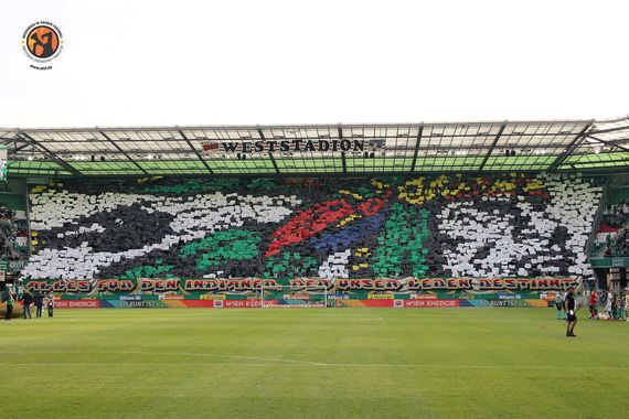 Die Ultras Rapid zeigten beim heutigen Heimspiel von Rapid Wien gegen Wacker Innsbruck, wie vorab angekündigt, ihre Choreografie, mit der 30 Jahre Ultras Rapid gefeiert wurde. Wie zu erwarten, handelte es sich um eine mehrteilige Choreografie im Block West.