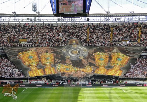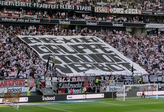Auch mit dem Intro feierte die Nordwestkurve Frankfurt nochmals den Pokalsieger von 2018. So war vor der Kurve der Spruch „Ein Adler geht nie zweimal ohne Beute“ zu lesen. Dazu wurde die große Blockfahne ausgebreitet, die die Ultras Frankfurt für das Pokalfinale 2017 malten. Neben den Pokalsiegen und Meistertiteln mit den entsprechenden Jahreszahlen hatte der Adler damals den DFB-Pokal mit der Zahl 2017 in seinen Krallen. Doch 2017 gewann Borussia Dortmund das Finale.
