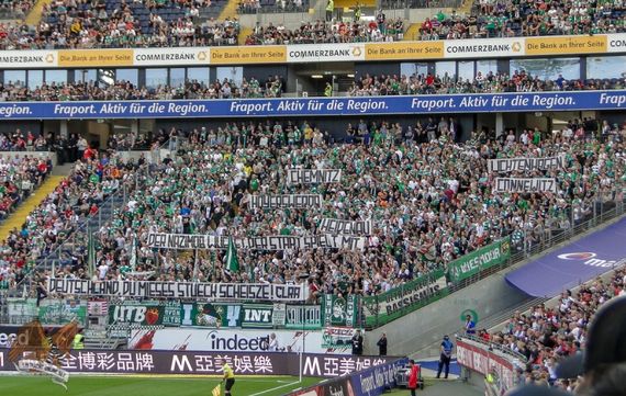 Zudem wurde in der Nordwestkurve Frankfurt noch die bekannte Blockfahne für die mit Stadionverboten belegten Eintracht Frankfurt-Fans hochgezogen und eine Frankfurter Version der „Otto-Siffling-Tribüne unverhandelbar“-Fahne hochgehalten. Mit dieser Fahne zeigten die Ultras Frankfurt ihre Solidarität mit den Freunden von den Ultras Mannheim, die nach den Vorfällen beim Aufstiegsspiel gegen Krefeld gegen die Schließung der Otto-Siffling-Tribüne als Fankurve ankämpfen. Bereits beim Pokal in Ulm zeigten die Frankfurter Ultras deshalb diese Fahne.