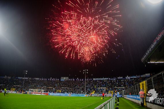 Feuerwerk hinter der Westkurve des Grünwalder Stadions