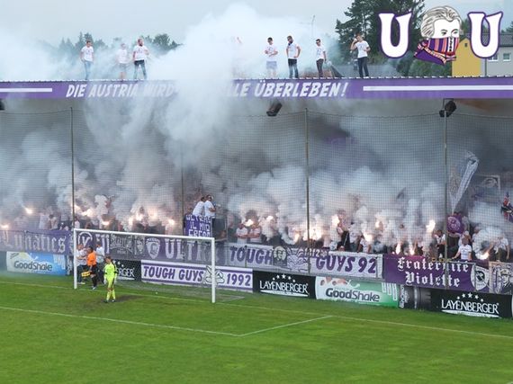 Auf den Tag genau 85. Jahre nachdem der SV Austria Salzburg am 15.09.1933 das erste Spiel der Vereinsgeschichte bestritt, stand gestern das Heimspiel von Austria Salzburg gegen UFV Thalgau an. Die Austria Salzburg-Fans feierten dabei den 85. Geburtstag ihres Vereins mit einer Choreografie, einer Pyroshow und einheitlichen weißen T-Shirts nach.