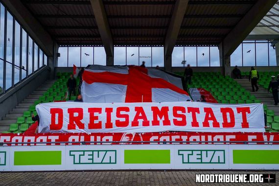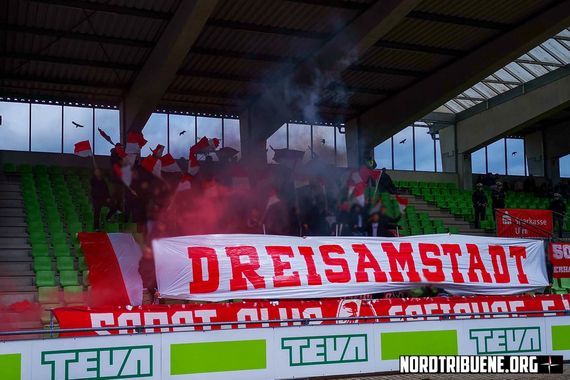 Zudem zeigten die mitgereisten SC Freiburg-Fans gestern in Ulm eine „Dreisamstadt“-Choreografie mit Blockfahne und Pyro. Während die „Amateure“ des SC Freiburg am Samstag ein torloses Regionalliga-Südwest-Spiel im Ulmer Donaustadion ablieferten, unterlagen die Profis in Leipzig mit 2:1. Diese Niederlage sahen die aktiven Gruppen Natural Born Ultras und IWF, die es vorgezogen haben, nach Leipzig zu reisen. Besonderer optischer Protest der Gästefans war dort nicht zu erkennen. (Faszination Fankurve, 29.04.2019)
