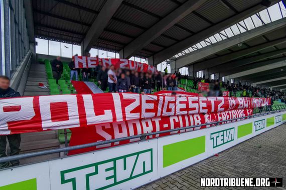 Dort waren auch die Synthesia Ultras anzutreffen, die im Donaustadion ein Spruchband zeigten, auf dem „Gegen dieses System und seine Auswüchse! Scheiß Red Bull Leipzig!“ geschrieben stand. Die Corrillo Ultras, die sich in der Vergangenheit schon ausführlich und reflektiert zum Thema RB Leipzig zu Wort meldeten, beteiligten sich am Samstag in Ulm zudem noch an der Plaktaktion verschiedener Fanszene aus Baden-Württemberg gegen eine mögliche Verschärfung des Polizeigesetzes in diesem Bundesland.