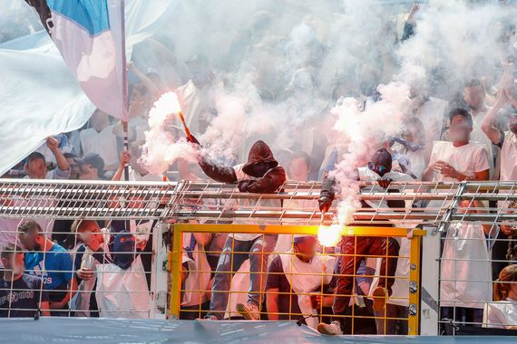 Raketen wurden zwischen Heim- und Gästefans hin und her geschossen.
