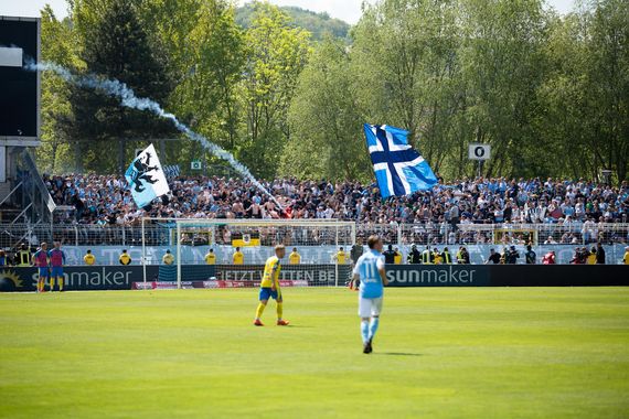 Ende März schien es noch, dass der FC Carl Zeiss Jena zum Saisonende aus der 3. Liga absteigen wird, doch die Thüringer kämpften sich mit einer Serie zurück und machten heute durch einen 4:0 Heimsieg den Klassenerhalt klar. Vor 10.600 Zuschauern gingen die Hausherren in der neunten Minute gegen die bereits geretteten Löwen durch ein Eigentor in Führung. Acht Minuten später erhöhte Brügmann durch einen Rechtsschuss auf 2:0 und in der zweiten Halbzeit traf Wolfram noch zwei Mal zum 4:0 Endstand. Die erleichterten Jena-Fans feierten den Klassenerhalt anschließend teilweise mit einem Platzsturm. (Faszination Fankurve, 18.05.2019)