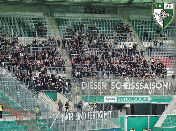Im Gästeblock gab es am Donnerstagabend, wie zuvor vom Kollektiv 1909 angekündigt, keinen organisierten Support. Stattdessen hing ein „Wir sind fertig mit dieser Scheißsaison“-Plakat. „Besonders die vergebene historische Chance auf eine mögliche direkte Qualifikation für die Europa-League-Gruppenphase gegen eine alles andere als übermächtige Liga-Konkurrenz schmerzt sehr. Daran können auch die verbleibenden zwei Spiele nichts mehr ändern – egal wie diese nun ausgehen. Die Saison ist und bleibt katastrophal, die Mannschaft hat alle Ziele und Hoffnungen, unsere Träume von Europa in unzumutbarer Art und Weise zerstört. Wir fühlen uns angesichts dessen nicht mehr dazu in der Lage, unsere eigenen Ansprüche, stets mit positivem Beispiel voranzugehen und unser Bestmögliches für Sturm beizutragen, bedingungslos aufrechtzuerhalten“, hieß es von der Sturm Graz-Fanszene im Vorfeld der Partie (Faszination Fankurve berichtete).