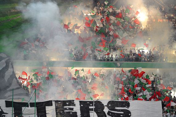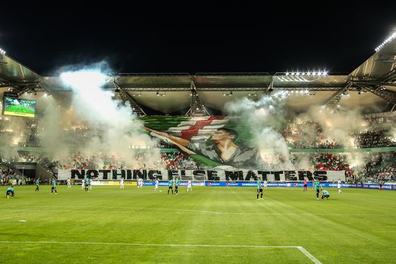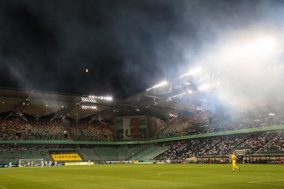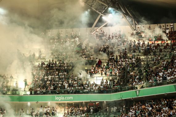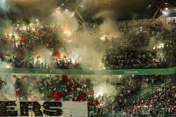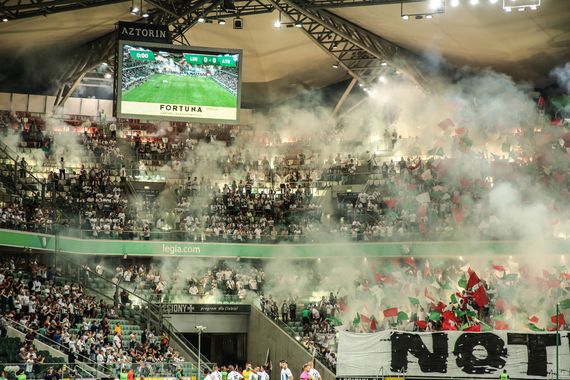 Legia-Ultras mit Choreografie & Pyroaktion beim Geisterspiel