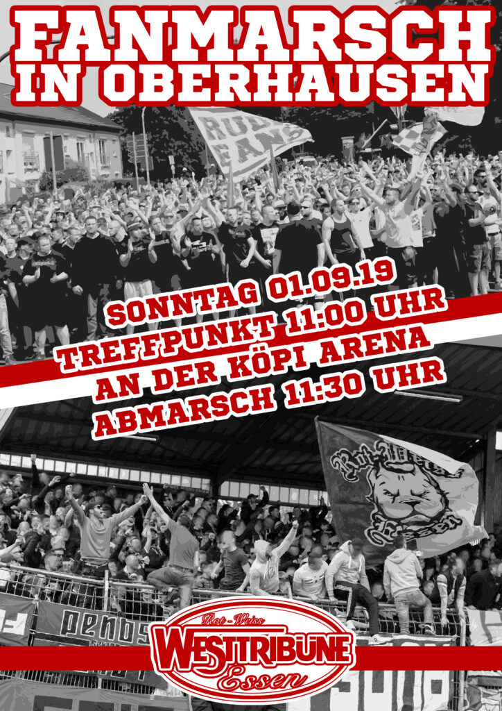 So ruft die Westtribüne Essen für Sonntag einen Fanmarsch in Oberhausen aus. RWE treffen sich dafür wieder vor König-Pilsener-Arena in Oberhausen, wo sich die Gästefans ab 11:00 Uhr versammeln wollen. Um 11:30 Uhr soll sich der Fanmarsch dann auf die knapp zwei Kilometer lange Strecke in Richtung Stadion Niederrhein machen, wo das Derby um 14:00 Uhr angepfiffen wird.