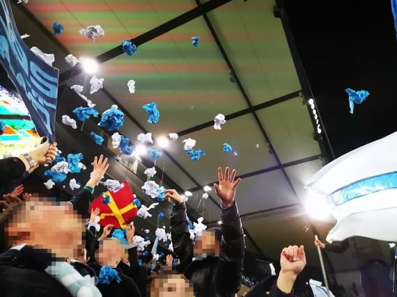 Im Hintergrund hielten die Rapid-Fans dazu grüne und weiße Zettel hoch, die ein Karomuster ergaben. „1999 Zwanzig Jahre 2019“, stand während der Choreografie vorm Block West geschrieben. Abgerundet wurde die Aktion mit Konfetti in den Vereinsfarben von Rapid Wien.