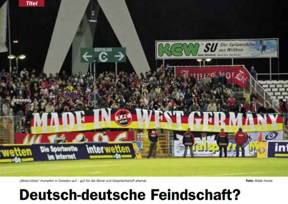 „15 Jahre nach der Wiedervereinigung schien man die Einigkeit unter Fußballfans im Osten und Westen der Republik vergeblich zu suchen. Das Titelthema untersucht, ob es einen Unterschied zwischen Fanszenen in Ost und West gibt“, hieß es damals in der Ankündigung vom „Ost vs. West: Deutsch-deutsche Fanfeindschaft?“-Titelthema, das ihr nun hier nachlesen könnt.