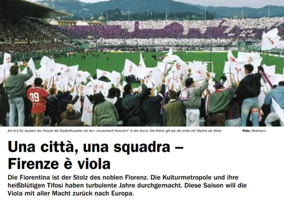 Die Fiorentina ist bis heute der Stolz des noblen Florenz. Die Kulturmetropole und ihre heißblütigen Tifosi haben turbulente Jahre durchgemacht. 2005 blickte ein Kenner der dortigen Fanszene für uns genauer in die Toskana. Die Fanszene von Hannover 96 kämpfte auch schon 2005 um ihren Platz im Gesamtkonzept des zweimaligen Deutschen Meisters, der sich damals in der 1. Bundesliga etablierte.Wenn ihr mehr über die Florenzer-Fanszene erfahren wollt, gibt es hier das Porträt für euch. Das Porträt der Hannover 96-Fanszene haben wir heute hier für euch. (Faszination Fankurve, 17.12.2019)