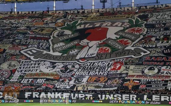 Als einzige deutsche Fanszine ist Eintracht Frankfurt u.a. mit dieser Choreografie beim Europa League-Heimspiel gegen Chelsea zu sehen.