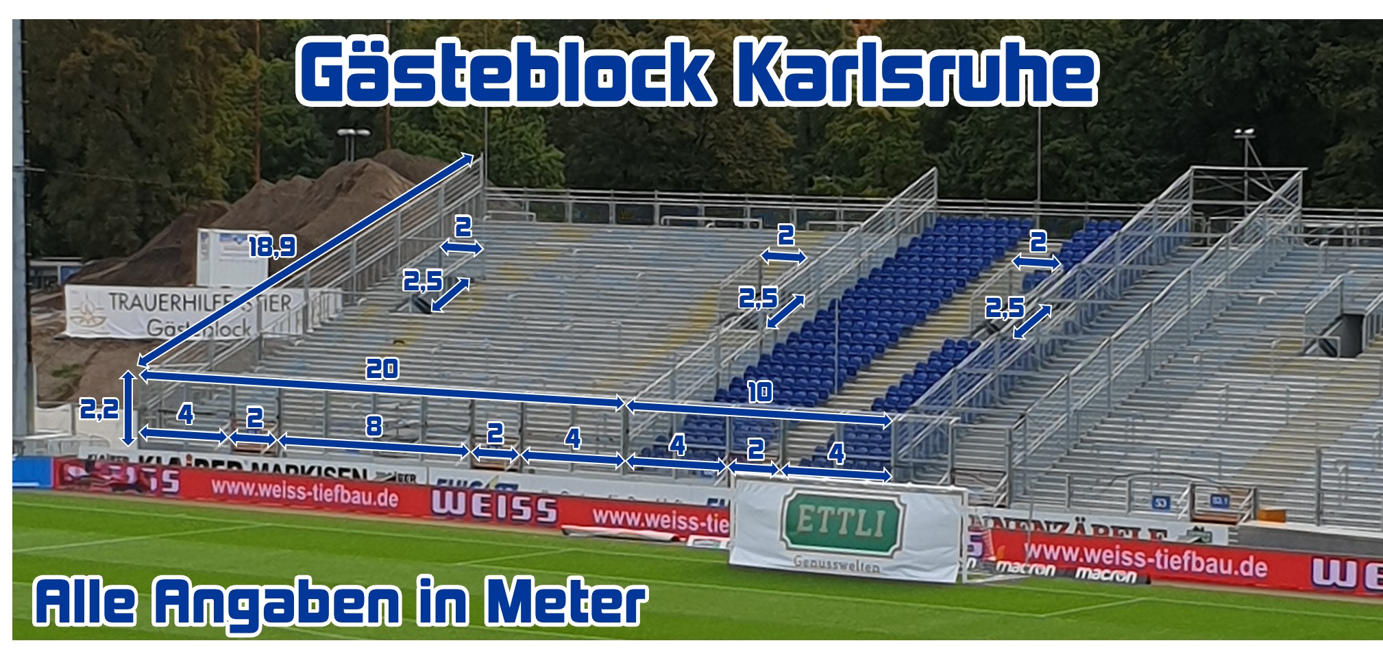 Die Supporters Karlsruhe haben den Gästefans die Maße des neuen Gästeblocks zur Verfügung gestellt.