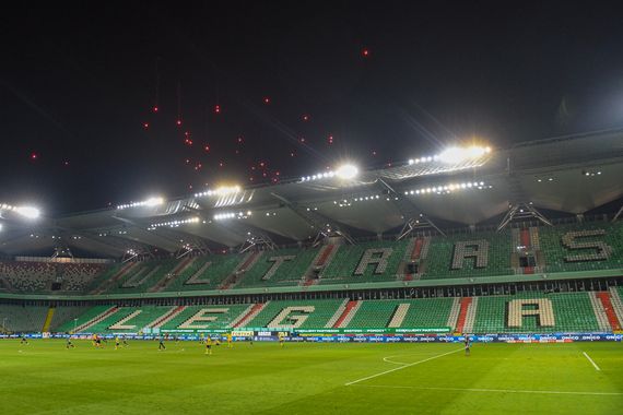 Legia-Ultras mit Choreografie & Pyroaktion beim Geisterspiel