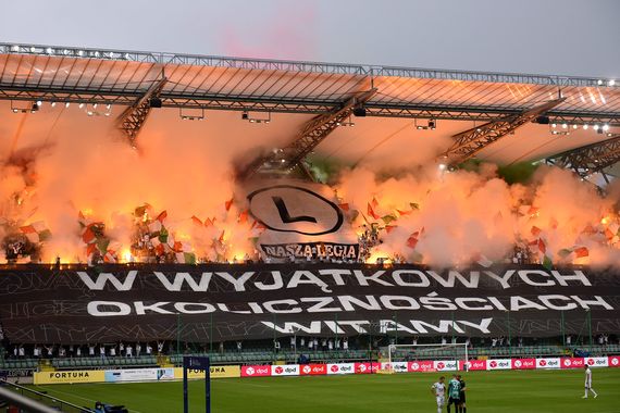 Beim ersten Heimspiel von Legia Warschau nach Re-Start der polnischen Ekstraklasa zeigten die Fans von…