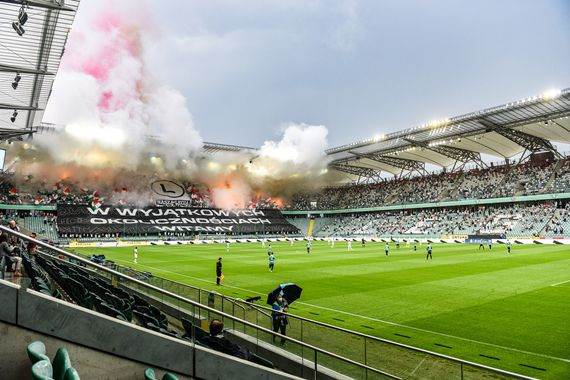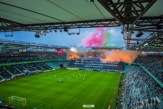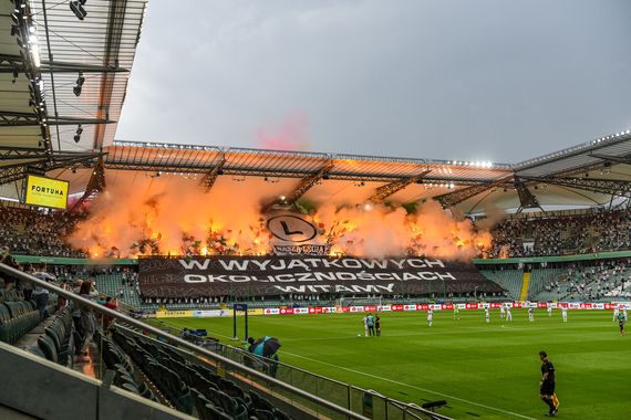 Legia-Ultras mit Choreografie & Pyroaktion beim Geisterspiel