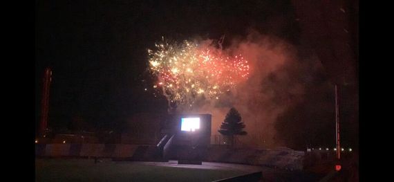 Ein Batterie-Feuerwerk hinter der Südkurve.