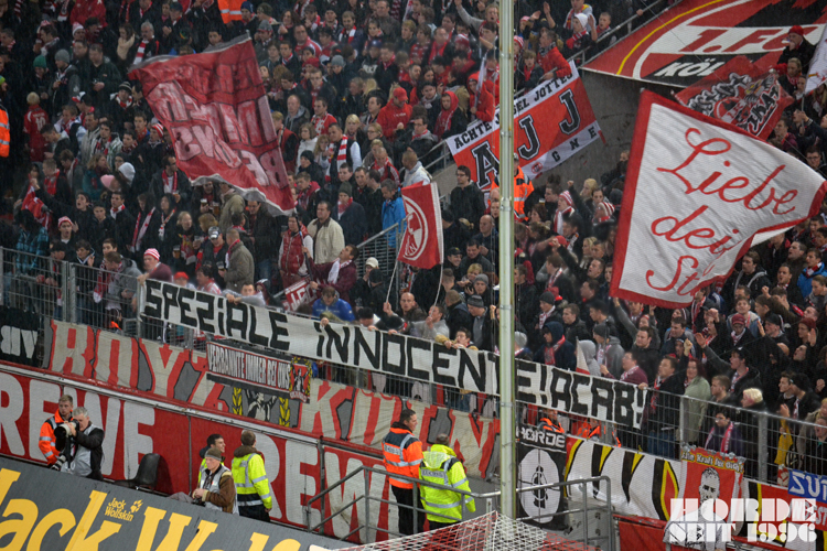 Spruchband in Köln zum Thema.