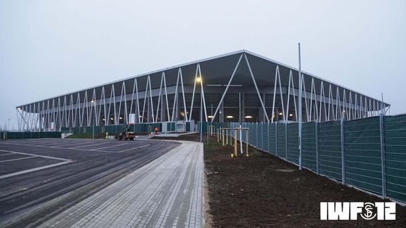 Der Gästeparkplatz am neuen SC-Stadion ist komplett eingezäunt.