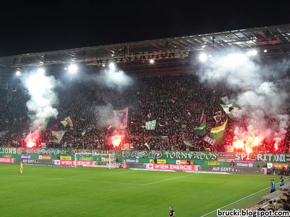 Choreo, Gedenkspruchband, Pyro, Aufruf für soziale Aktion und großer Besuch aus Nürnberg bei Rapid Wien gegen Sturm Graz