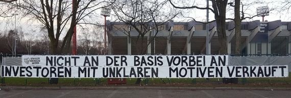 Spruchband der Ultras Krefeld an der Grotenburg.